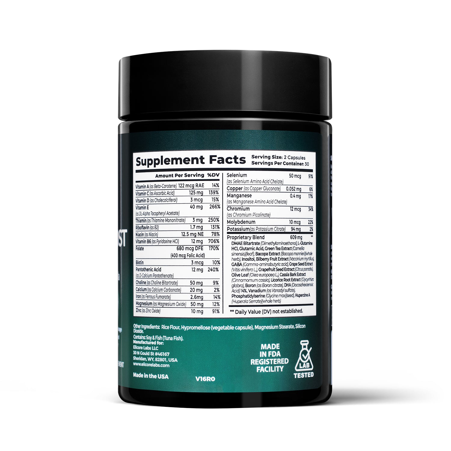 Elicore Brain Boost Fusion is designed to enhance cognitive function, improve memory retention, and increase mental clarity. Its unique blend of natural ingredients supports overall brain health, helping users maintain focus and mental sharpness throughout the day.