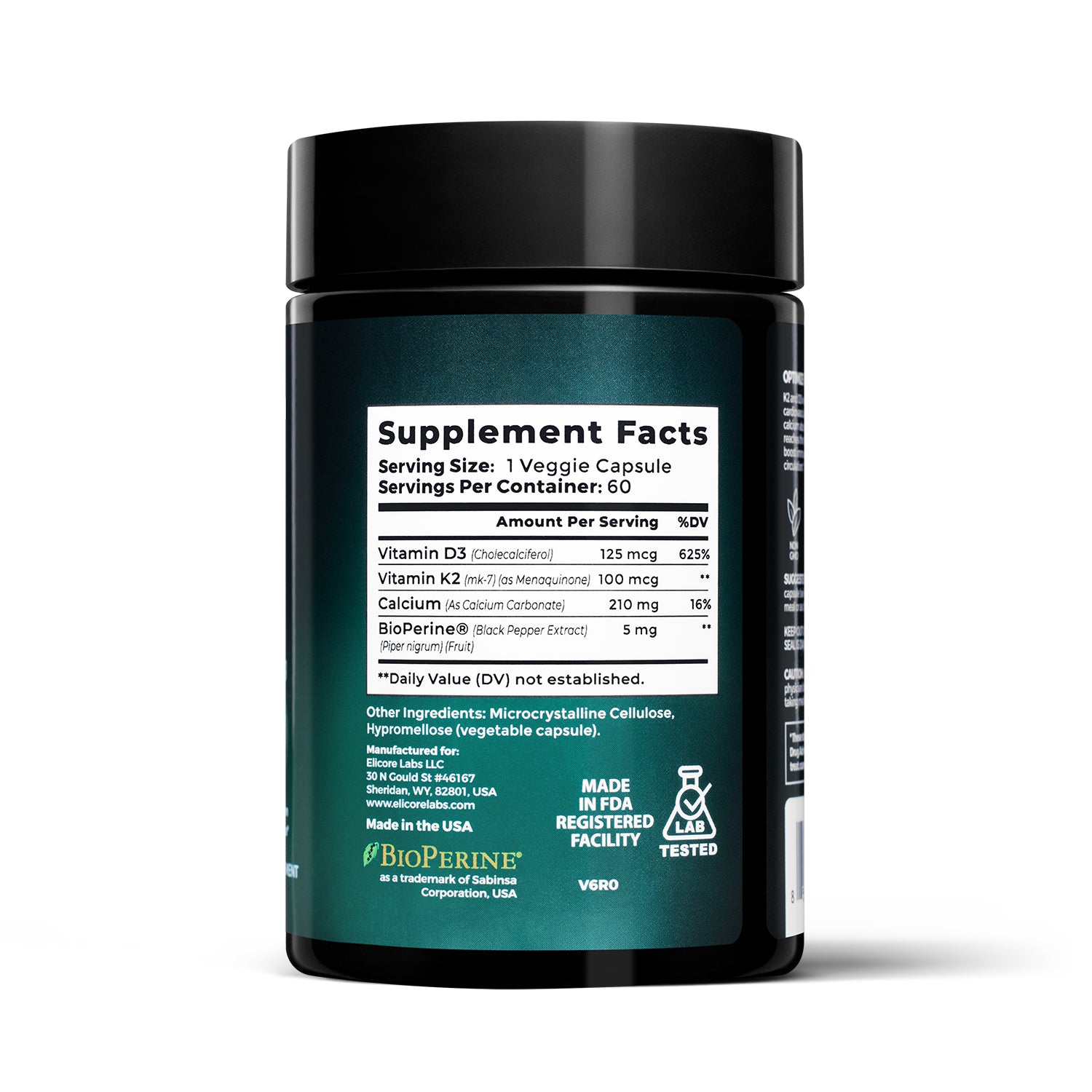 BioPerine®, derived from black pepper extract, enhances the bioavailability of Vitamin K2 and D3, ensuring your body absorbs and utilizes these nutrients more effectively, maximizing the supplement's benefits for bone and heart health.