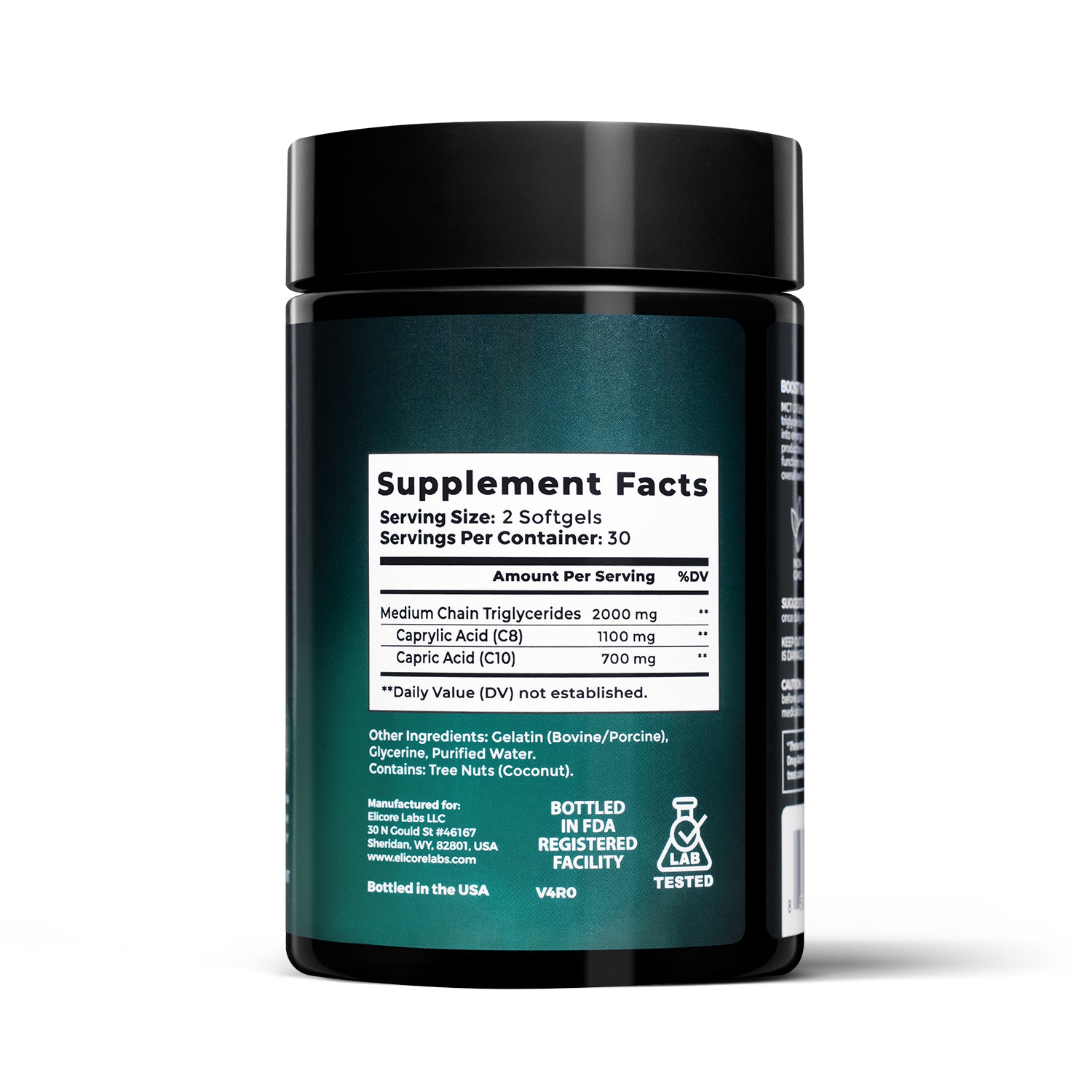 Elicore MCT Oil contains 2000 mg of medium-chain triglycerides (MCTs) per serving, including 1100 mg of Caprylic Acid (C8) and 700 mg of Capric Acid (C10). This high-quality formula ensures rapid energy production and supports metabolism, making it a top choice for those seeking effective and natural energy boosters. Unlike generic MCT oils, Elicore is Non-GMO, Gluten-Free, and manufactured in the USA in an FDA-registered facility for maximum quality assurance.