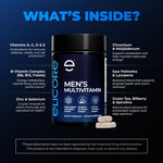 ELICORE Men's Multivitamin includes a B-vitamin complex (B6, B12, and more) and an Antioxidant Fruit & Energy Blend featuring green tea extract and pomegranate. These ingredients work together to contribute to energy levels, support mental clarity, and support vitality.