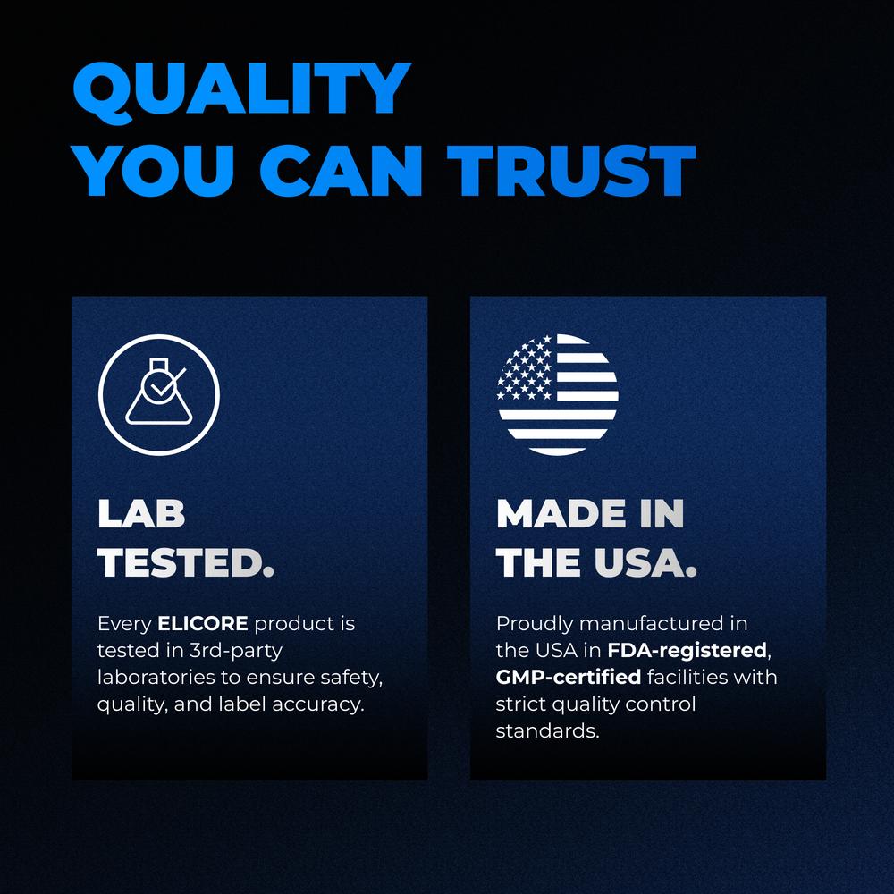 ELICORE Men's Multivitamin is tailored to men's health needs with targeted blends for overall wellness, energy, and immunity. It also includes premium ingredients like lutein for eye health and spirulina for added antioxidant benefits, offering a complete, thoughtfully crafted formula.