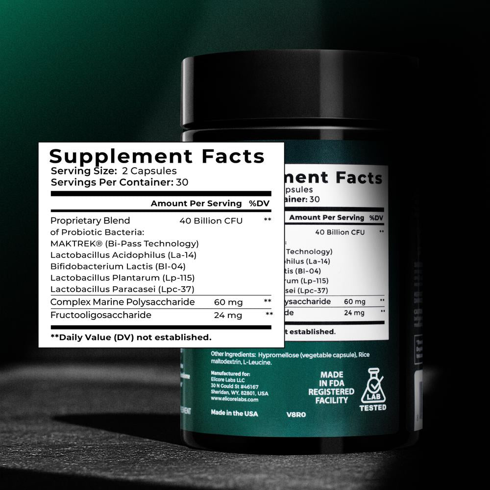 Includes Complex Marine Polysaccharide and Fructooligosaccharide, which serve as nourishment for probiotics and contribute to a supportive gut environment.